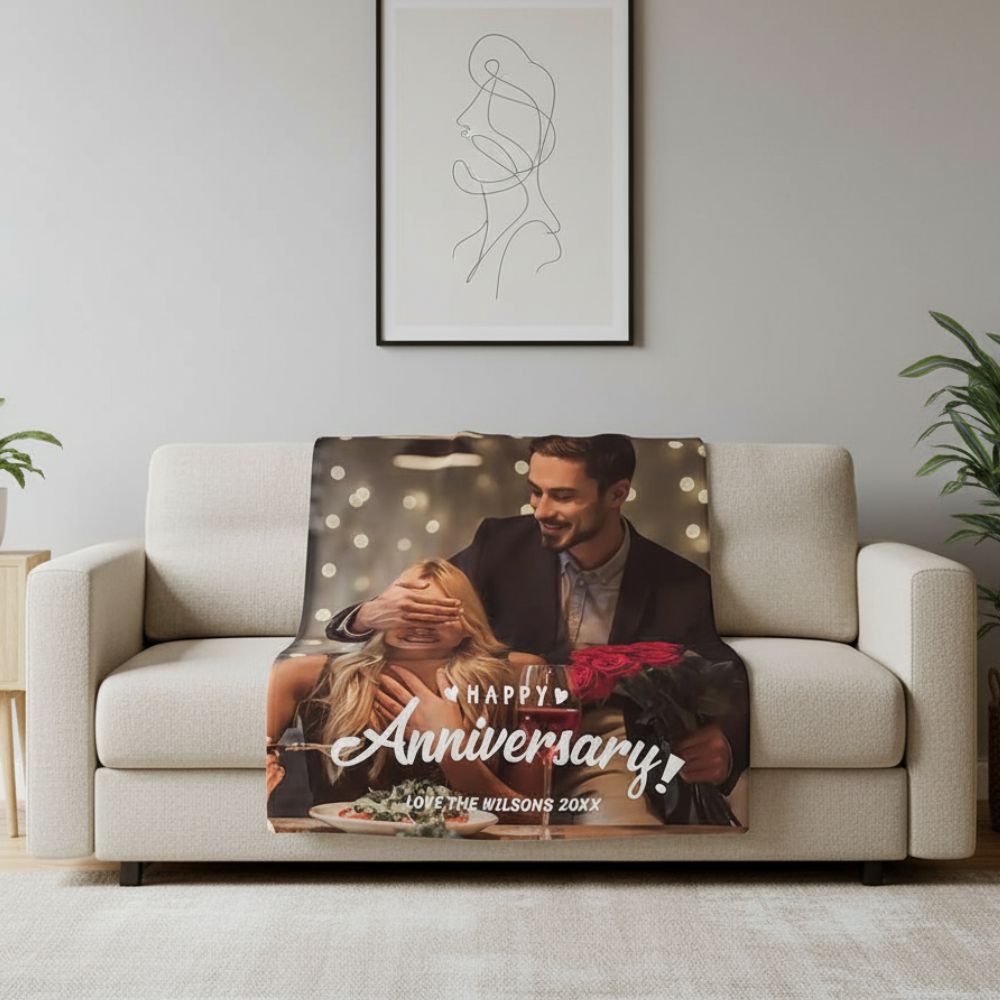 Confectionnée en tissu 100% polyester doux et résistant, cette couverture à personnaliser allie confort et originalité. Choisissez vos photos préférées et transformez-les en un plaid unique qui raconte une histoire, la vôtre. Offrez un cadeau qui réchauffe le cœur autant que le corps, parfait pour un anniversaire, Noël ou une pendaison de crémaillère.