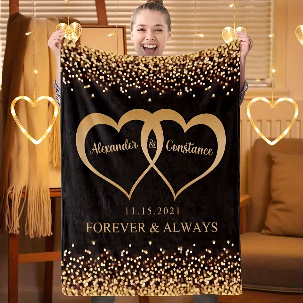 Confectionnée avec soin en tissu 100% polyester de haute qualité, la couverture avec des prénoms séduit par sa texture douce et soyeuse. Chaque prénom imprimé devient un symbole d’amour et de partage. Offrez-la pour un anniversaire, la Saint-Valentin, un mariage ou simplement pour faire plaisir : un cadeau unique et plein de sens qui marquera durablement les esprits.