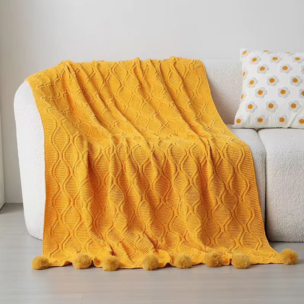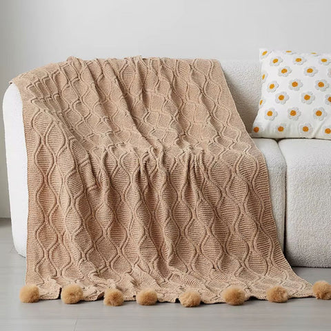 The bedroom blanket is a bedspread with pompoms that will help keep your room warm during the long winters.