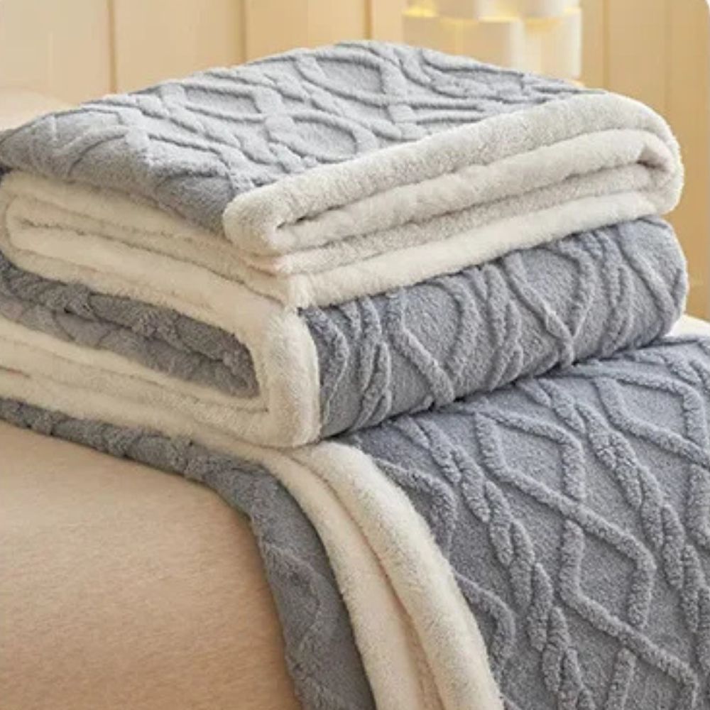 THIS GREY AND WHITE THROW IS WARM AND STURDY. USE IT AS A SOFA THROW OR BEDSPREAD